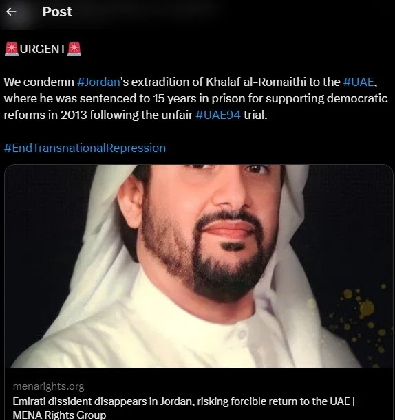 UAE was also condemned by human rights organizations. Al-Shamsi, director of